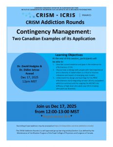 [1] Canadian Institutes of Health Research. CRISM Prairies: Understanding addiction pathways, strengthening support systems, and shaping evidence-based policies for a healthier future https://cihr-irsc.gc.ca/e/53690.html Accessed January 15, 2025.