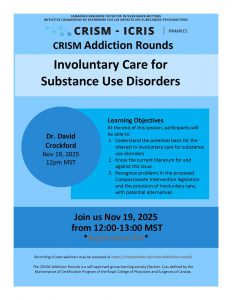 [1] Canadian Institutes of Health Research. CRISM Prairies: Understanding addiction pathways, strengthening support systems, and shaping evidence-based policies for a healthier future https://cihr-irsc.gc.ca/e/53690.html Accessed January 15, 2025.